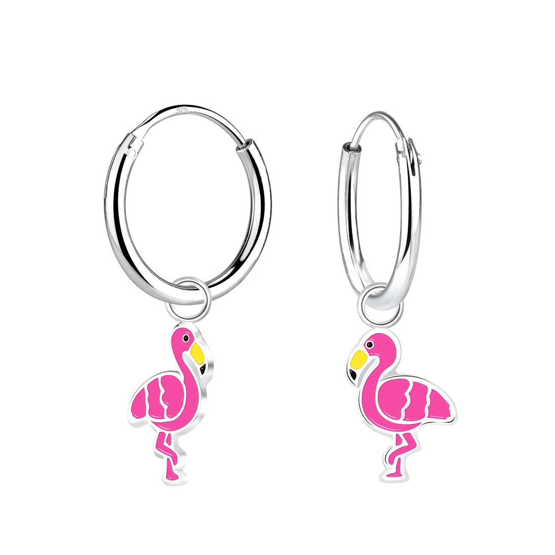 Silberne Kinder-Creolen mit Flamingo Motiv - 925 Silber