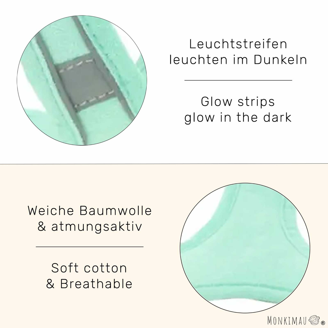 Das Geschirr verfügt über leuchtende Reflektoren, die bei schlechten Lichtverhältnissen die Sichtbarkeit erhöhen. Dies sorgt für ein höheres Maß an Sicherheit und bietet Dir zusätzliche Sicherheit während Spaziergängen in der Dunkelheit.