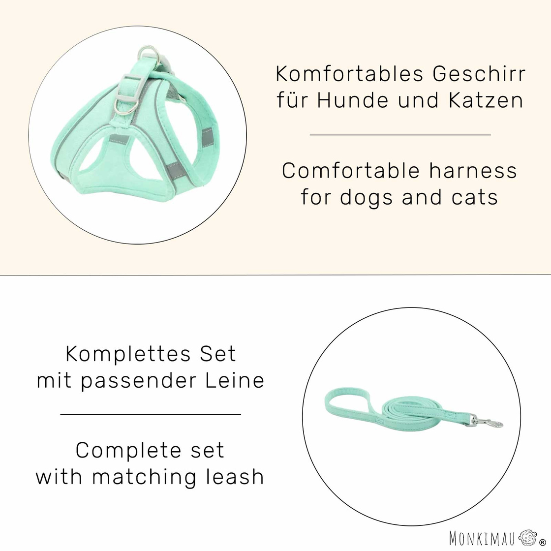 Das Geschirr ist in einer schönen türkisen Farbe erhältlich, die sowohl stylisch als auch modern ist. Es passt perfekt zu Deinem Hund und verleiht ihm eine zusätzliche Portion an Stil.