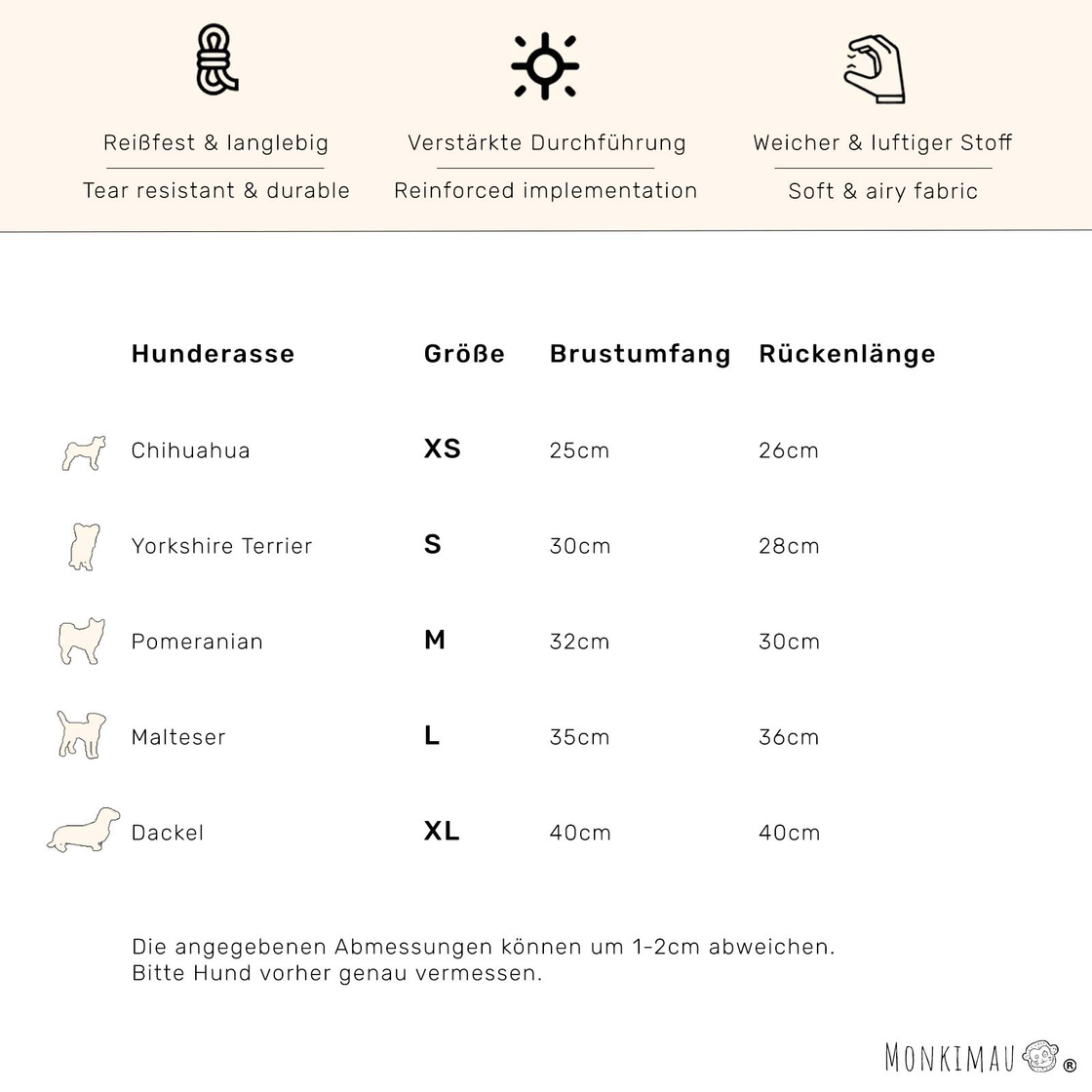 Bitte beachte, dass alle Angaben um 1-2cm abweichen können. Messe Deinen Hund zuvor genau aus, um die perfekte Größe zu finden.