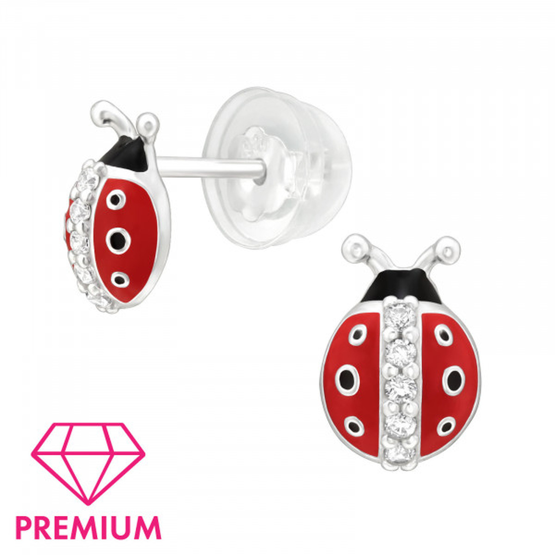 Premium Marienkäfer Kinderohrringe aus 925 Silber mit Zirkonia